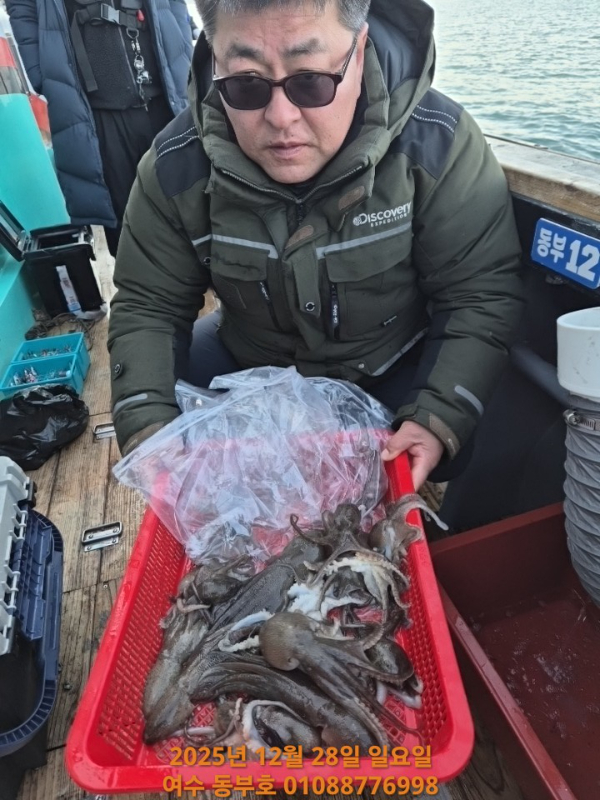 12월 28일 일.여수 동부호 쭈꾸미 조황>오늘은며칠동안 풍랑주의보 이후에기온이 뚝 떨어져서 어젠 꼼짝도않던 쭈꾸미가 조금 활성도를 찾아갔습니다실력 좋으신분들은 조황이 좋습니다진주펄애자, 메가탄 고추장이나 수박, 리얼새우애기에 반응이 좋습니다~내일은 쭈꾸미 활성도가 더 좋을거같으니 대박나길 기대하겠습니다~~^^오늘도 찾아주신분들고생 많이 하셨고찾아주셔서 감사합니다~~다음에 또 뵙겠습니다 ~~^^앞으로도더욱 노력하는 선사가되도록 하겠습니다동부호는전국 최대크기의 갈치배이지만생활낚시하기에 최상의 구조로 만들었고배위쪽 갑판도 넓지만 밑으로도 넓고 깊어서 롤링이 적고 쾌적하고 편하도록 설계되었습니다아직 신조선이라 조금씩 자
